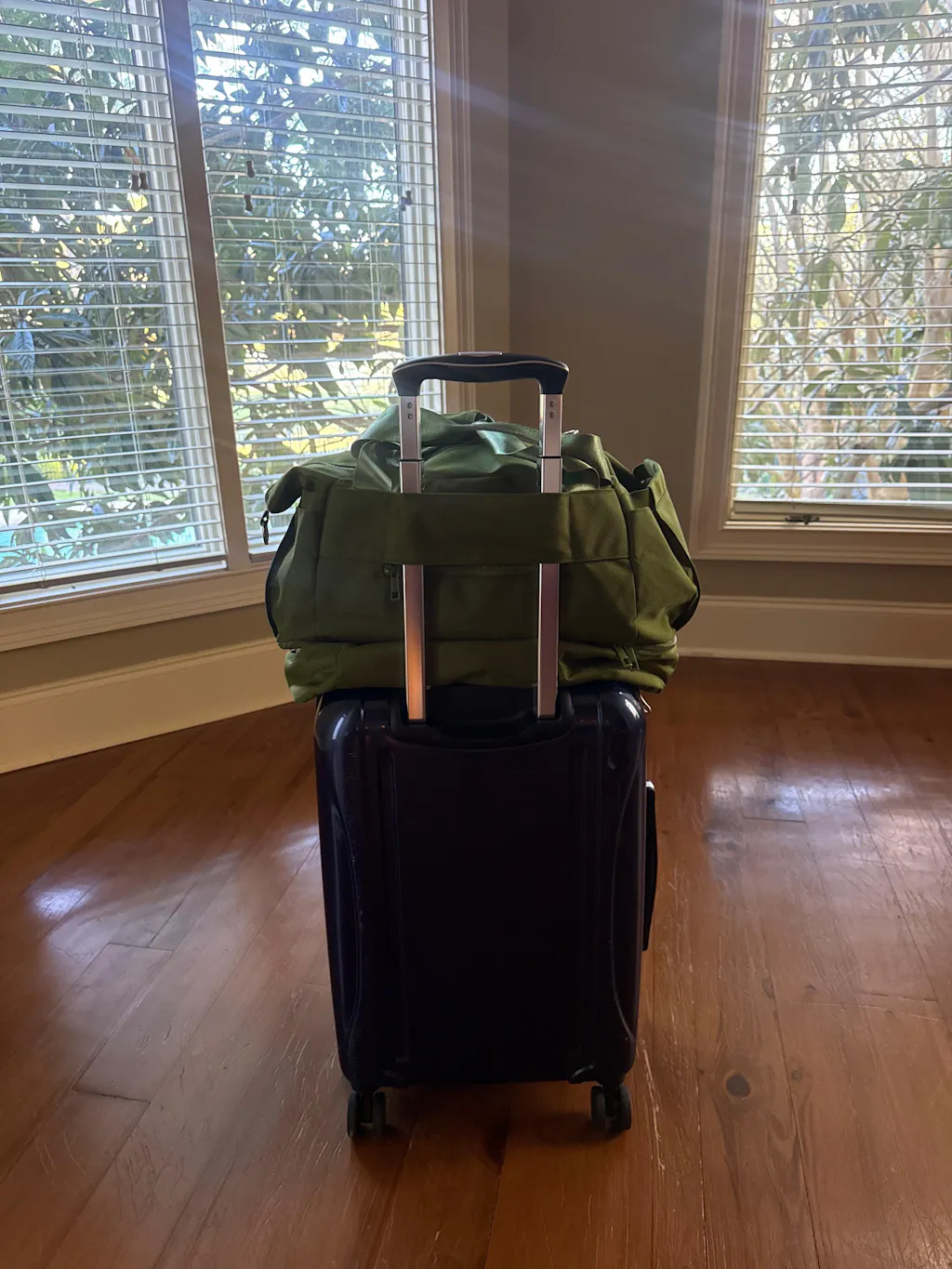 The weekender is my new favorite bag! It is the perfect overnight bag or carry-on!! The trolley strap on the back is such a great feature to easily attach to your rolling suitcase!