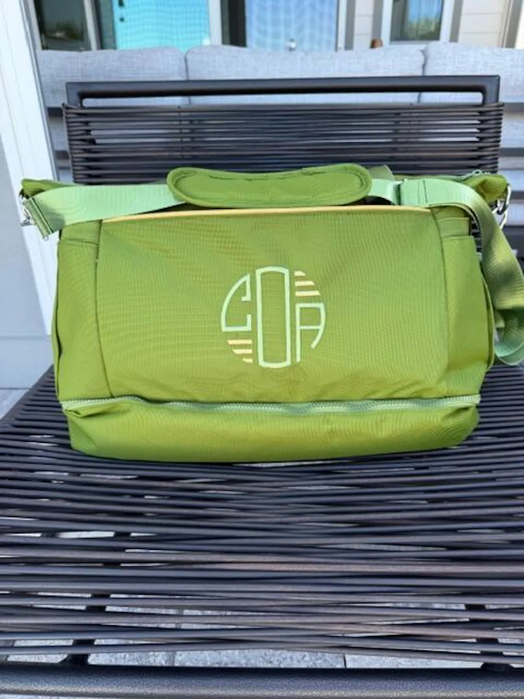 Absolutely love this weekender bag. The vibrant green color is even prettier in person, and the monogram gives it such a polished, personal tough. It's the perfect size for a short overnight trip-roomy enough for essentials without feeling bulky. Best of all, it's lightweight and easy to carry. Stylish, practical, and beautifully made.